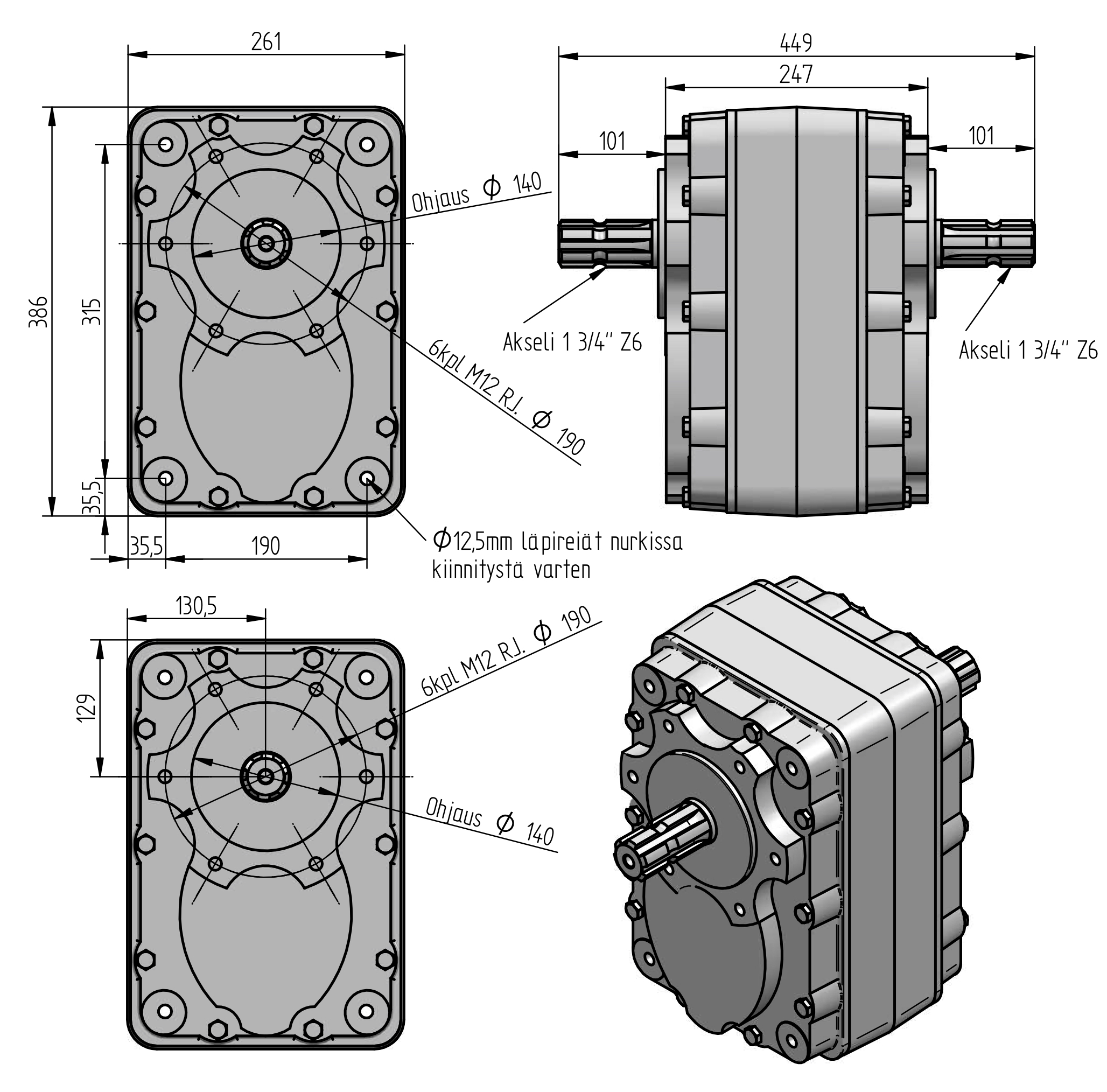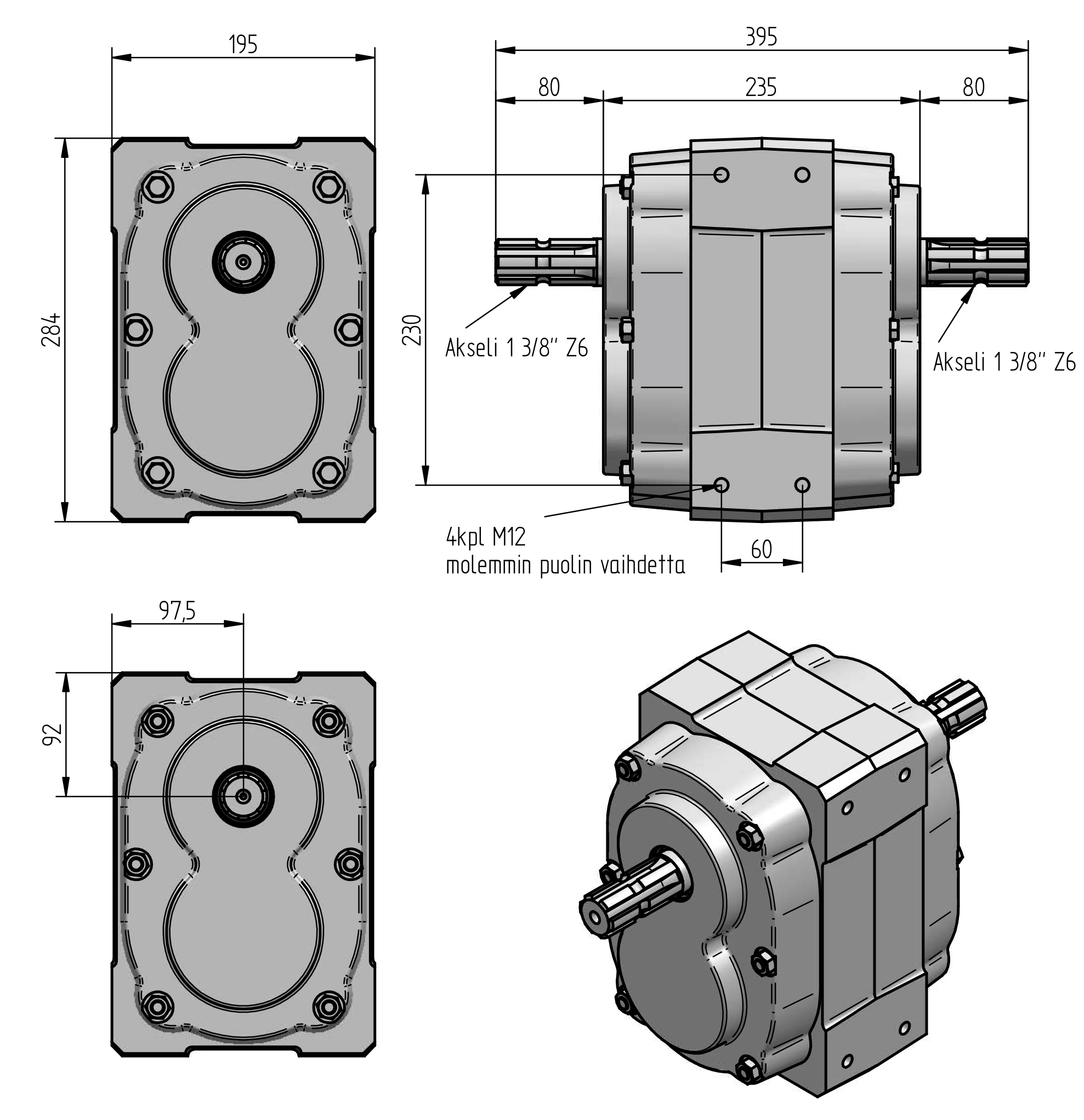 | Vaihteen kiinnitys | Sivuista 8xM12 |