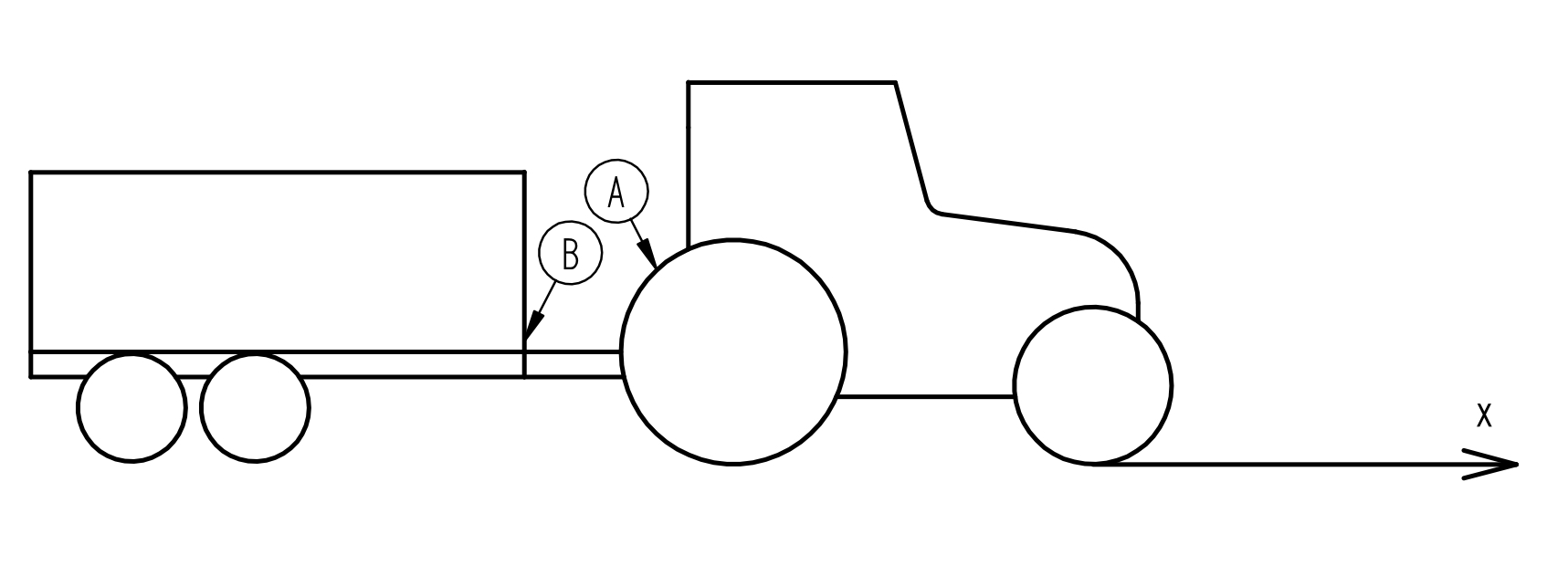 Traktoriin laitetaan perävaunu perään ja sillä ajetaan niin, että kärryn kardaani (B) pyörii esim. 20 kertaa. Yhtä aikaa traktorin ulosotosta (A) lasketaan sen pyörimät kierrokset. Traktorin ulosotosta otetaan huomioon osakierroksetkin. Tulos tarkistetaan muutaman kerran. Tällöin matkaa (X) ei tarvitse tietää ja vältytään turhilta mittavirheiltä. Näillä kahdella luvulla saadaan tarkka välitys käytännössä.